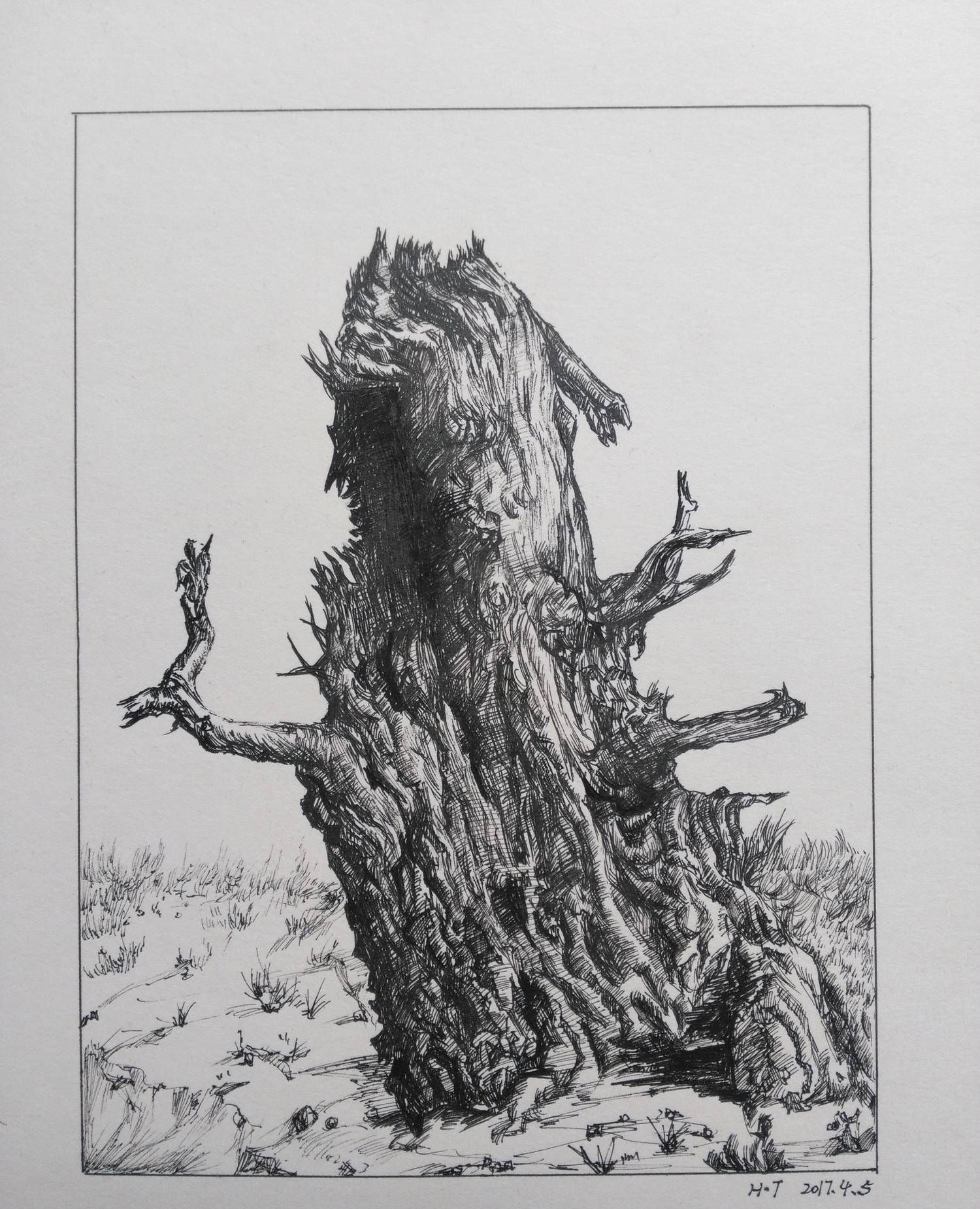新疆艺术学院油画系毕业生洪涛创作的钢笔画作品