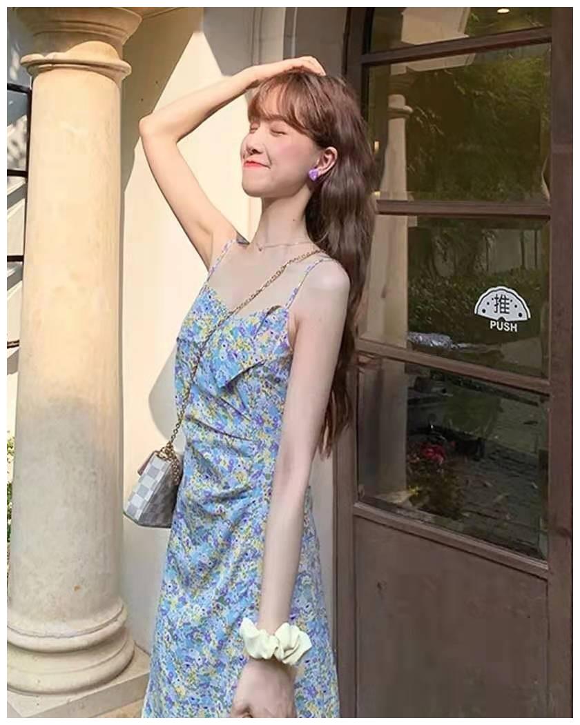 需要注意的是选择尺码小一号的吊带油画裙才更合身。