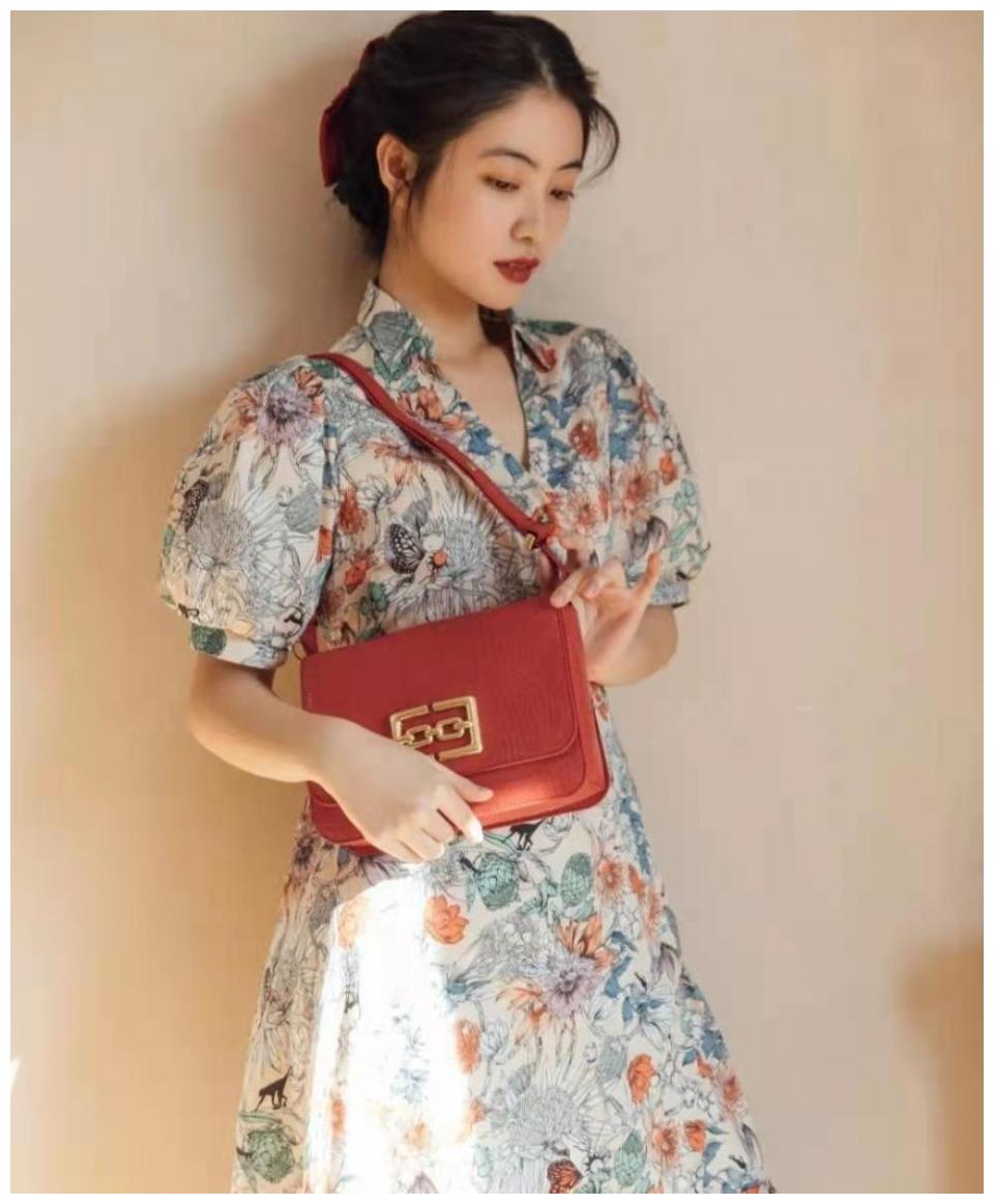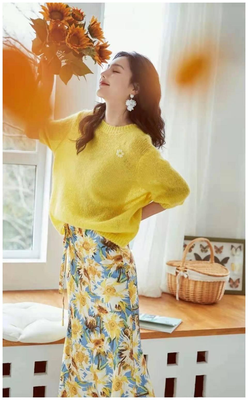 油画裙的最大特点在于浪漫艳丽的配色,所以颜色选对了,穿搭就成功了80%。最方便的方法就是根据自己的肤色选择,皮肤白皙透亮的女性可以穿以黄色、粉色、草绿色等莫兰迪色系为主的油画裙,色调淡雅清新,更符合夏天的感觉,皮肤较暗的女性建议选择饱和度较低的底色,能够削弱整体的艳丽感,穿起来更加日常,但注意不要选择较亮的颜色,又俗又土。