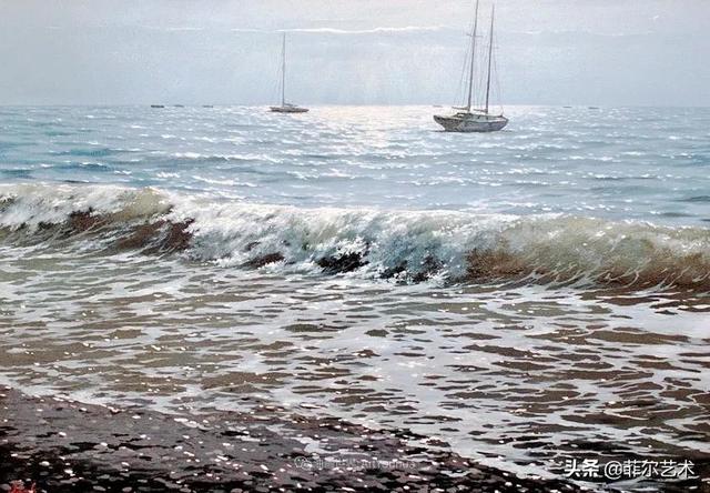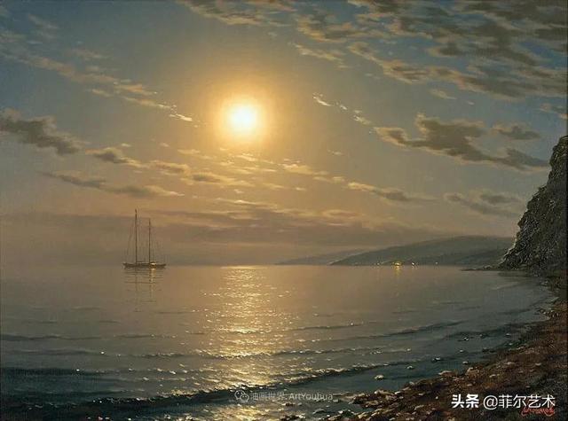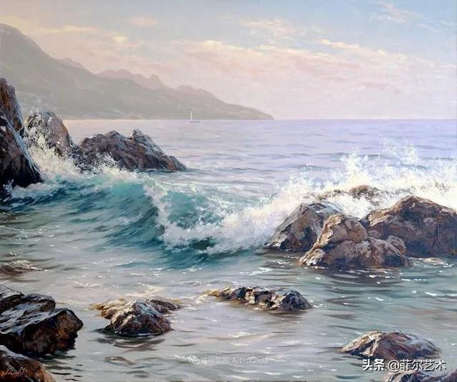 艺术家正在获得的动力,仿佛得到了解放,画笔的运动获得了自由,涂抹变得果断而准确,作品获得了强烈的现实感。当然,浪漫主义的元素仍然存在,因为它是艺术家灵魂的特征,是由海洋元素的本质产生的。在它的力量面前,美所带来的兴奋和激动加上恐惧和颤抖,使任何人都不能无动于衷。