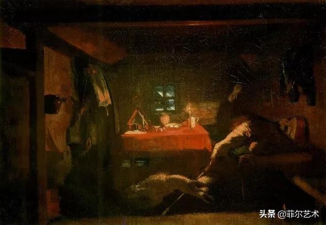 画家有意将这个得势的小吏置于狭小的空间里,四处杯盘狼藉,陈设零乱,从每一件细小的物品上,都可以联想到昨晚的得意情景。所有这些,意在揭露沙皇时代的官吏空虚、卑劣、丑陋的灵魂。费多托夫的绘画具有很强的文学性和幽默感,这是批判现实主义艺术的一大特点。