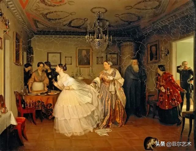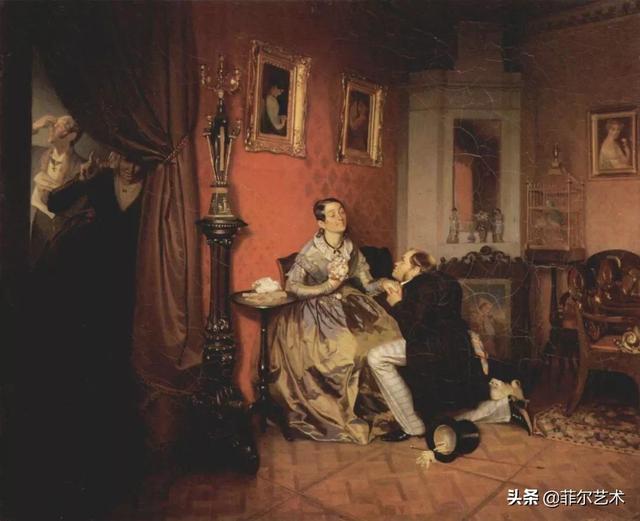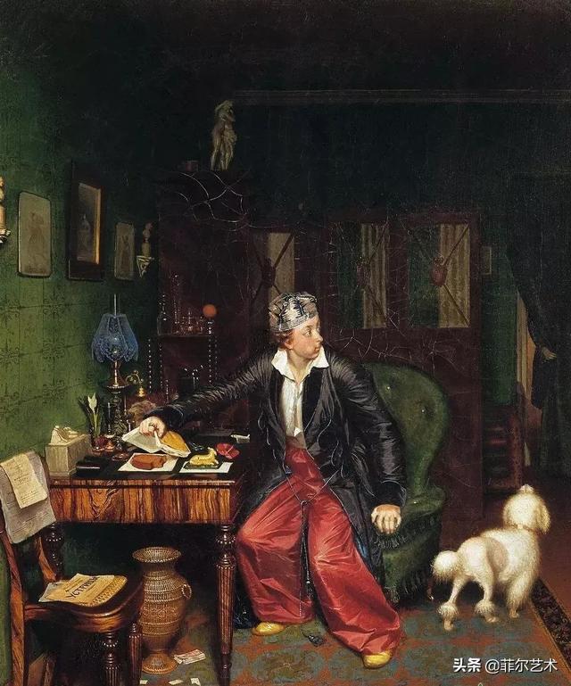 巴维尔·安德烈耶维奇·费多托夫(1815-1852),俄罗斯19世纪上半期伟大的批判现实主义画家。费多托夫是在革命民主主义思潮影响中成长起来的画家,他所画的讽刺性风俗画十分生动,令观者忍俊不禁而后陷入深思,他那微妙的幽默,针砭时弊。真实的描绘和深刻的讽刺内容,揭露了当时社会中的畸形人物和丑陋现象。