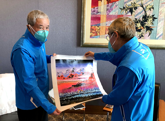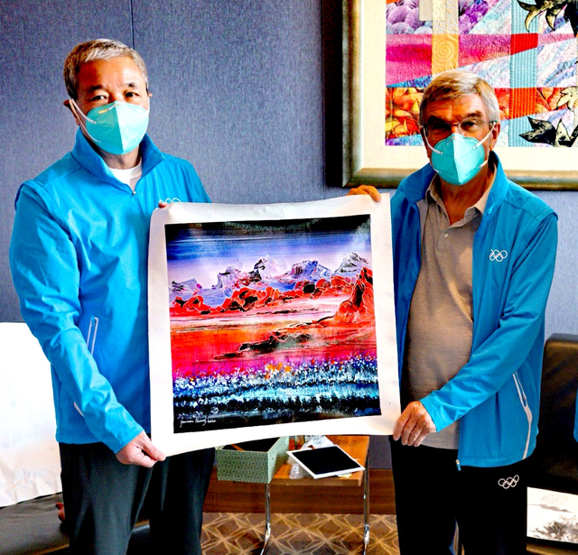 东京奥运牵引着全世界的目光。8月7日,国际奥委会副主席、北京冬奥组委副主席于再清在日本东京向国际奥委会主席巴赫转交了一幅名为《光辉历程》的油画。这幅画是由“为奥运喝彩”海外艺术总顾问、著名艺术家黄建南创作,并托于再清赠送给巴赫的。