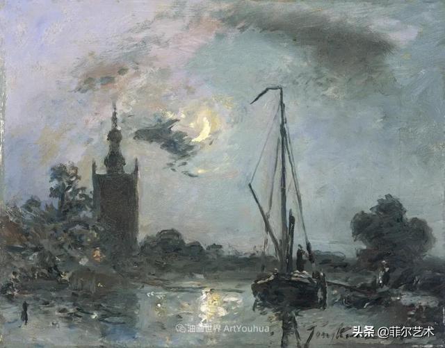 约翰·巴索尔德·琼坎德(Johan Barthold Jongkind 1819~1891年)是荷兰画家和版画家。他自由地画海洋景观,被认为是印象派的先驱。常用水彩进行户外写生,然后再加工为油画,他的油画保持了写生稿的生动性,色彩感觉极佳。
