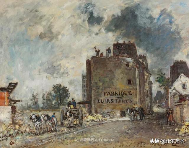 Jongkind于1855年回到鹿特丹,并在那里居住直到1860年。1861年回到巴黎,他在蒙帕纳斯(Montparnasse)的Chevreuse街上租了一个工作室,在那里他的一些画作开始显现出即将来临的印象派风格。