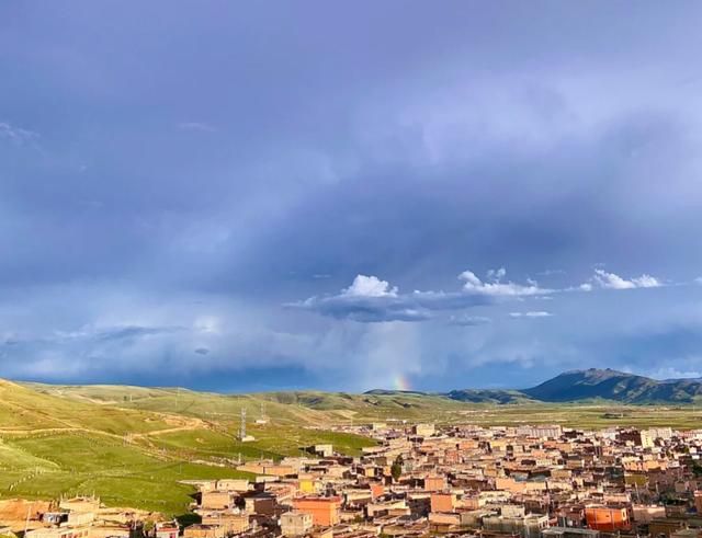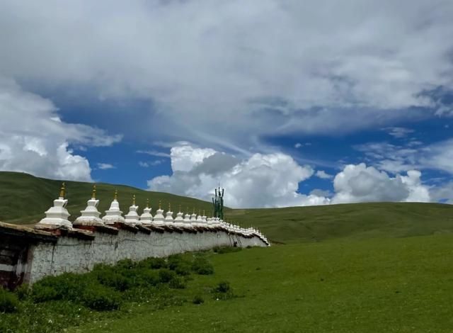 白墙绵亘在了草地上,神圣的背影,令人心生了敬意,清新的空气中,弥漫着青草与自由的香气,美丽的天空之城,是丁真的家乡。