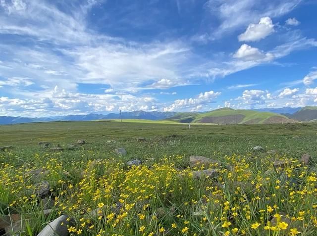 漫山遍野的小黄花,不知开在了谁的故事中,小小的一朵,散着迷人的芬芳,石头缝中的小可爱,破土而出了,悄然浪漫了茫茫草原,天空很低,伸手就能够到,稀薄的空气,诉了北纬28度的神奇,飘走的云朵,渐渐变幻着,遮住了蔚蓝的天空,也抵挡了火热的太阳。