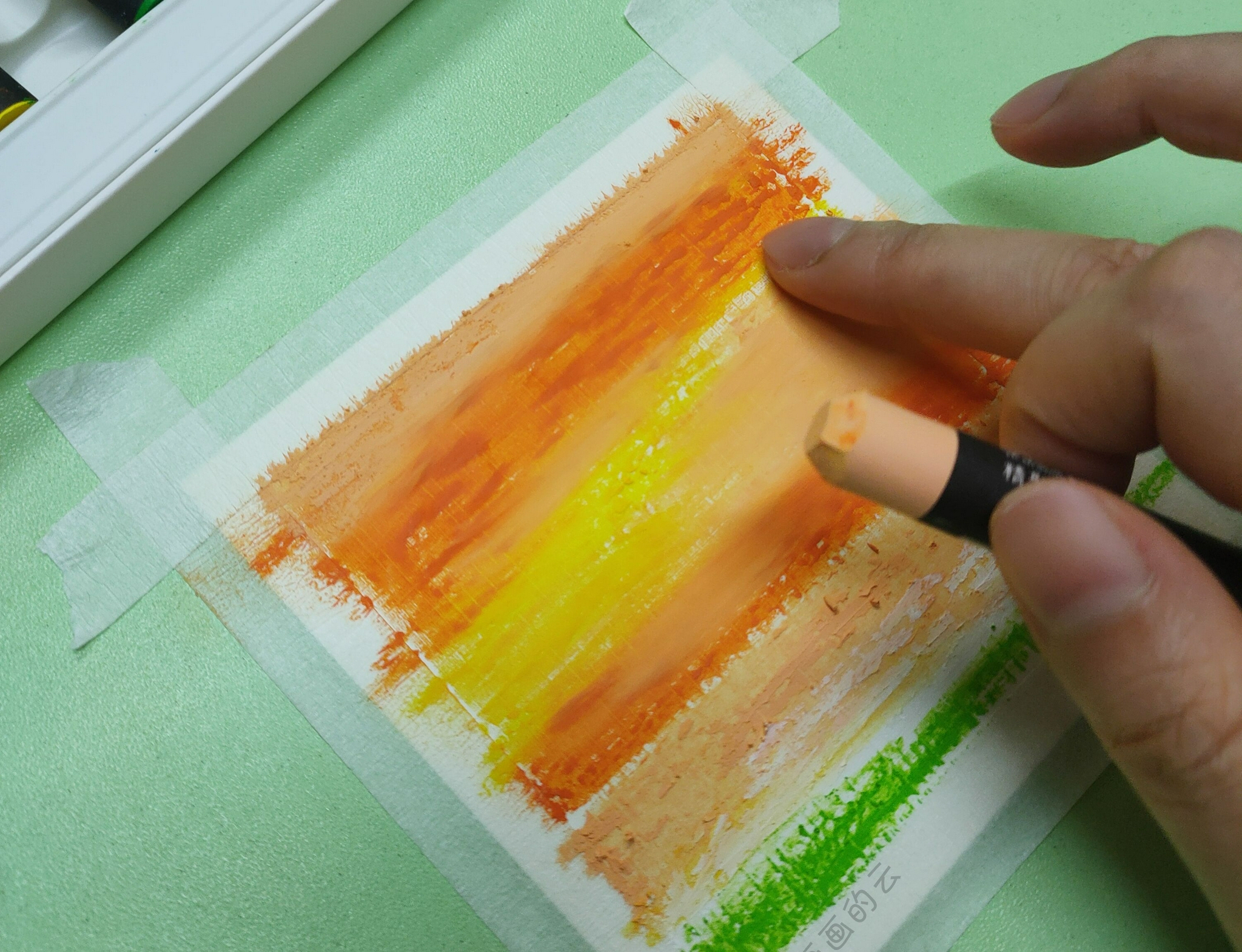 004、最开心的步骤来啦,就是用手指把颜色均匀地擦开,如果颜色有缺失随时用油画棒补上,再用手指擦均匀;