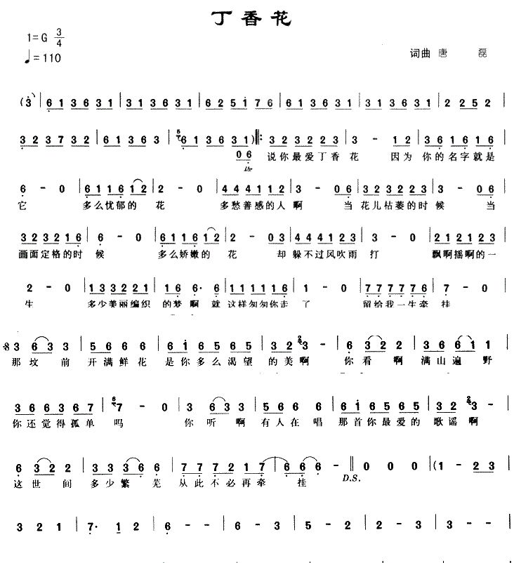 说起丁香花,很容易让我想起校园时期流行的一首歌——《丁香花》。这首歌的作者叫“唐磊”,歌词是这样写的: