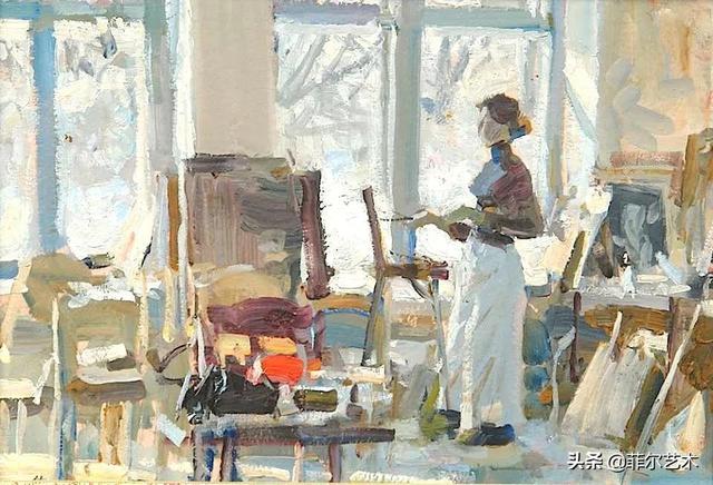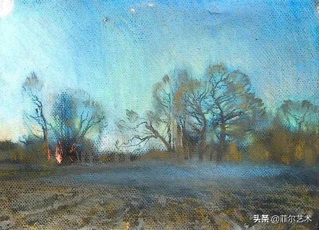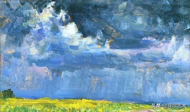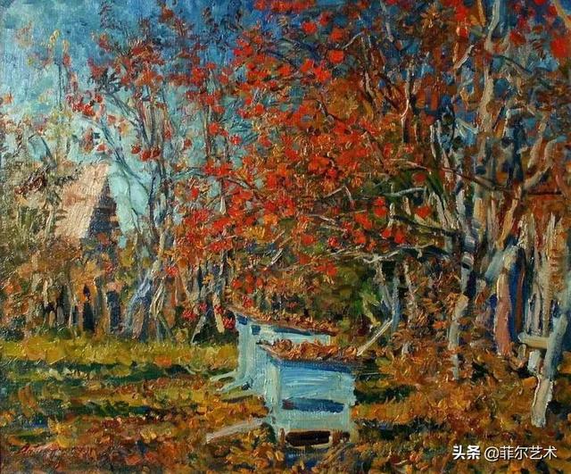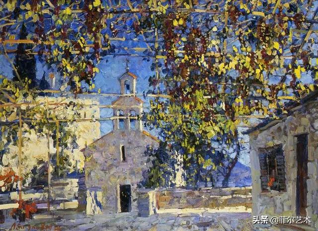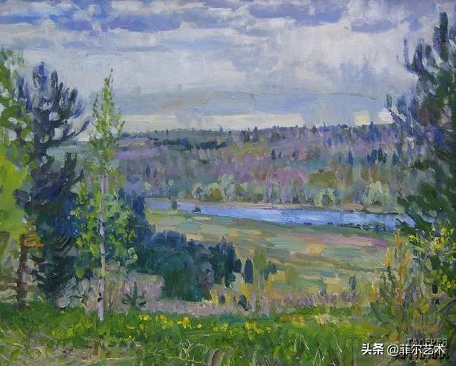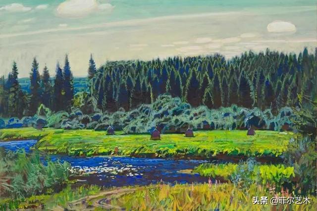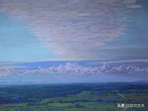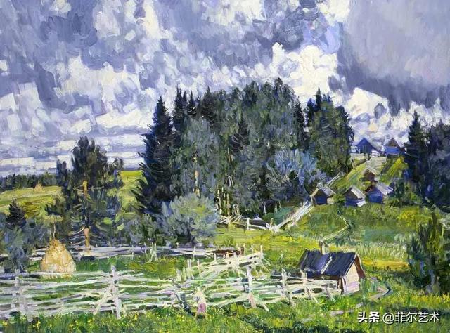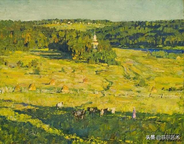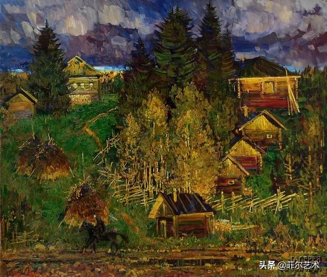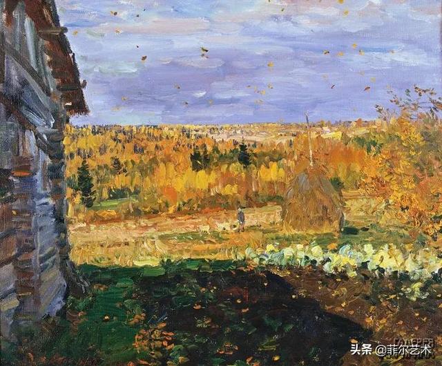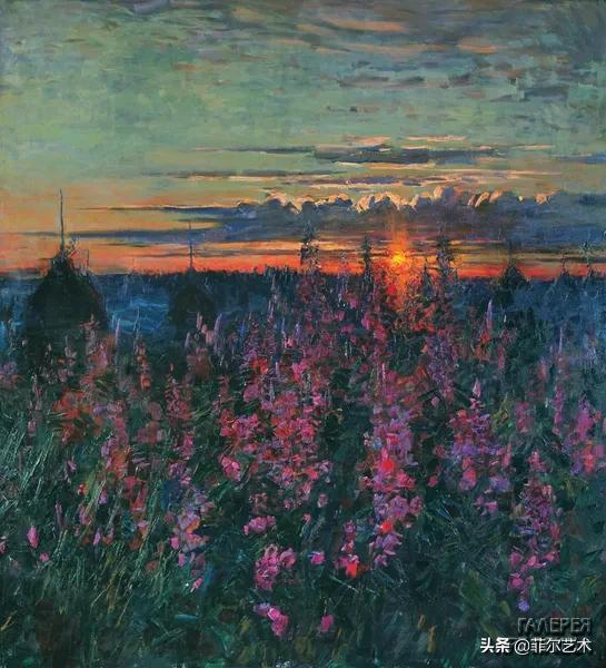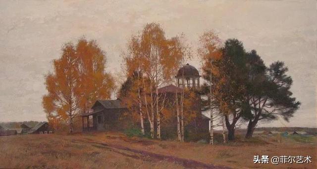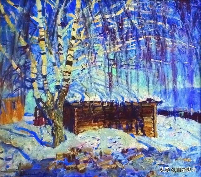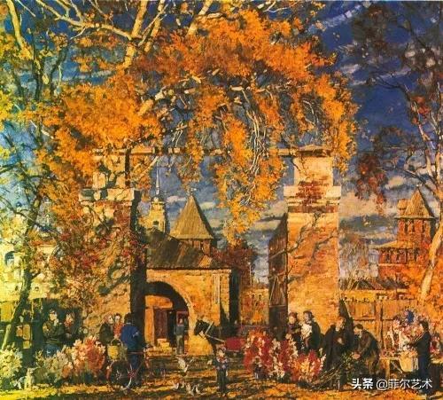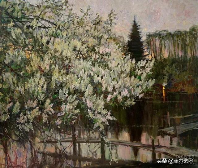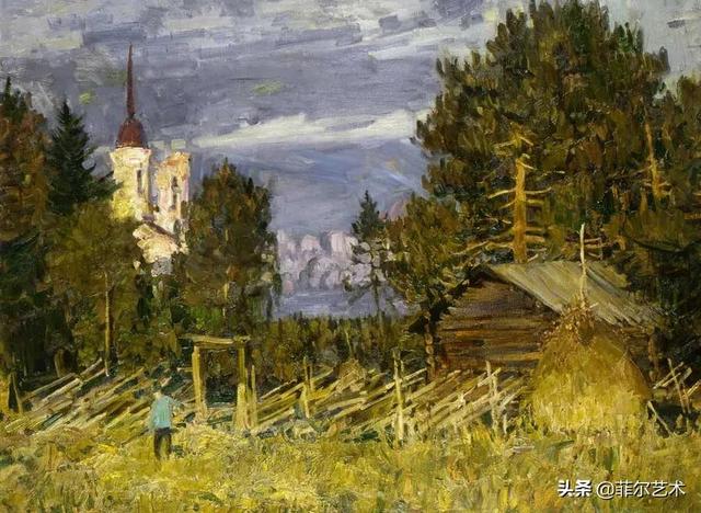 大气的自然世界在阿巴库莫夫的艺术中是至高无上的——在他描绘的宁静、温暖的夜晚中,树林装饰着夕阳的最后一缕光芒,闪闪发光的雪,被雨水洗浴净化的绿色世界,透过春天的青翠看到的修道院白色墙壁……所有这些都是刻意地充满了微妙的,颤抖的诗意。