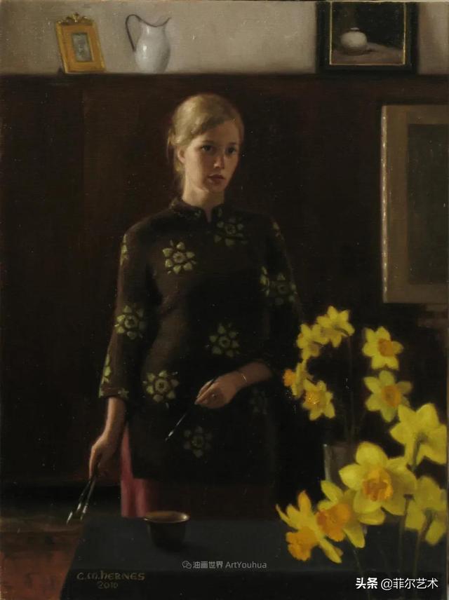 科妮莉亚·赫内斯 (Cornelia Hernes) ,挪威古典写实画家。她出生于挪威,从小绘画就为她提供了一个充满无限可能和创作乐趣的世界。从她十几岁开始追求油画开始,科妮莉亚就对通过肖像和神话主题来表现人类形态和情感表达特别感兴趣。在佛罗伦萨艺术学院接受培训期间,她进一步发展了对静物、室内装饰和自然主题流派的深厚感情。
